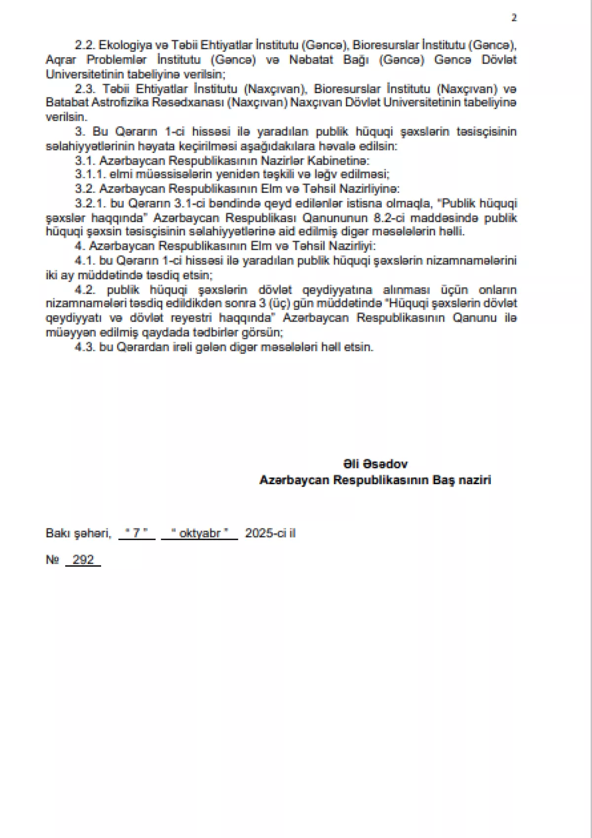 Как сообщает Caliber.Az, премьер-министр Али Асадов подписал соответствующее решение.