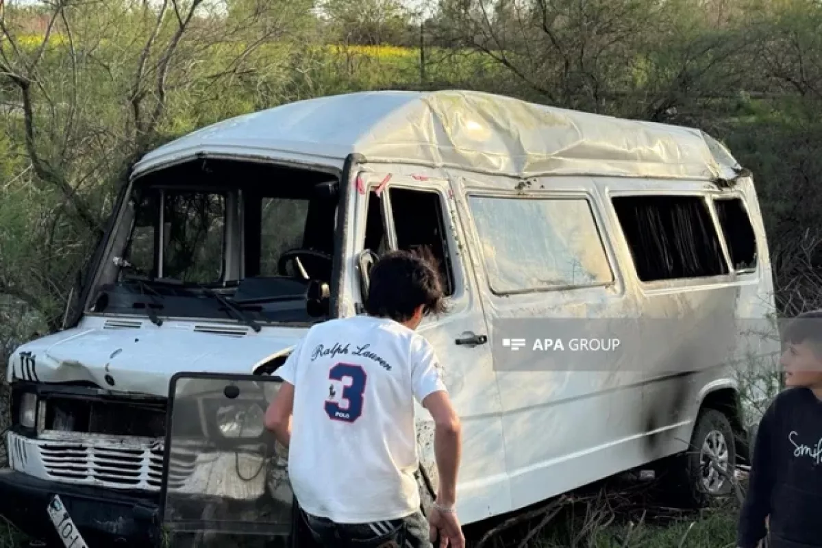 В Азербайджане перевернулся микроавтобус со школьниками ФОТО