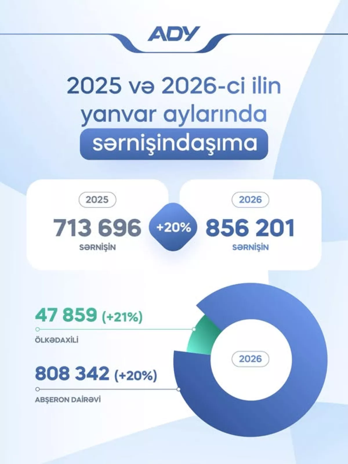 В январе 2026 года ЗАО «Азербайджанские железные дороги» перевезло по Бакинской окружной дороге и внутренним маршрутам 856 тысяч 201 пассажира.