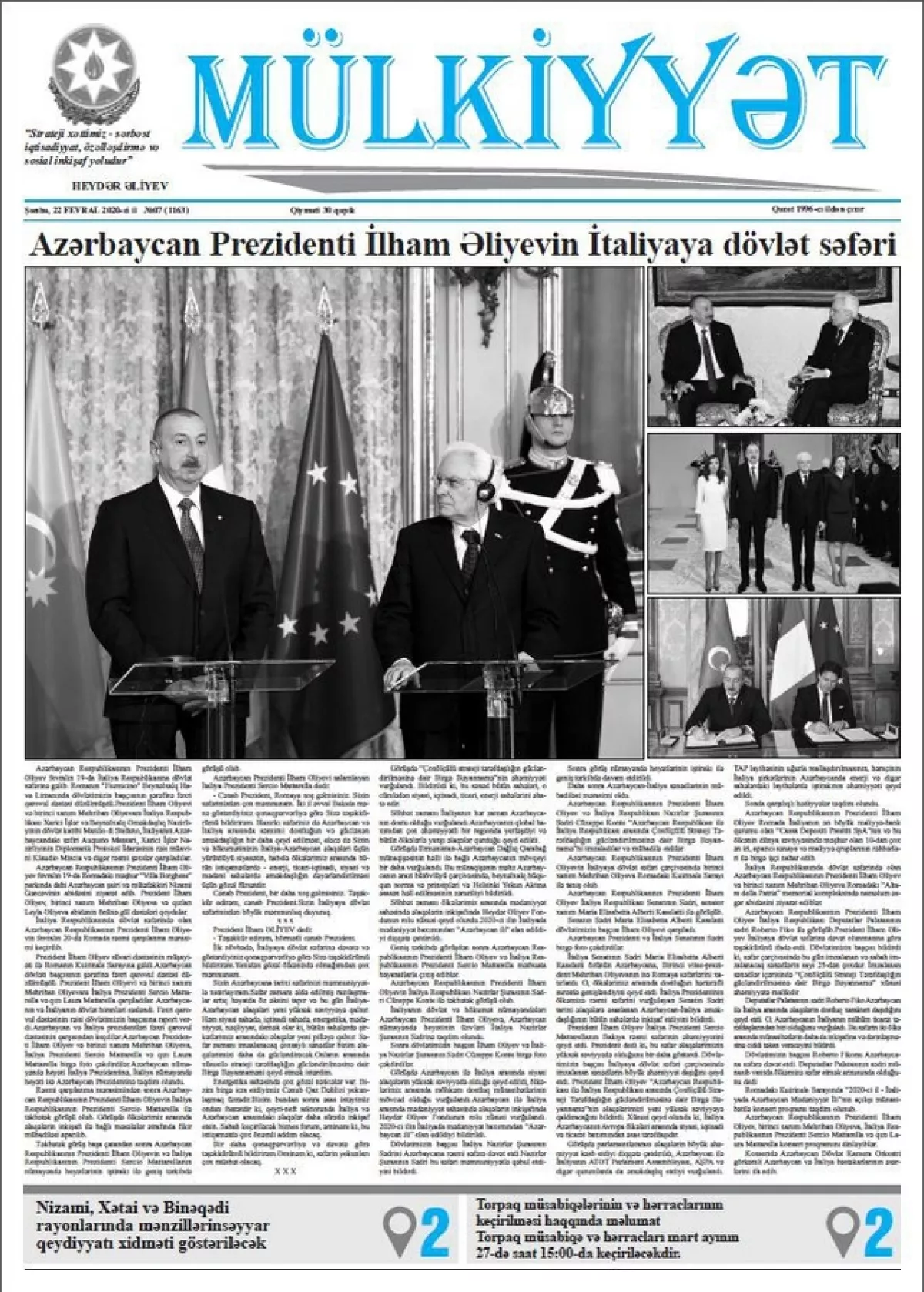 В связи с деятельностью газеты «Мюлькийет» (Mülkiyyət) и журнала «Бюллетень недвижимости», принадлежащих Государственной службе по вопросам недвижимости, начаты юридические процедуры.