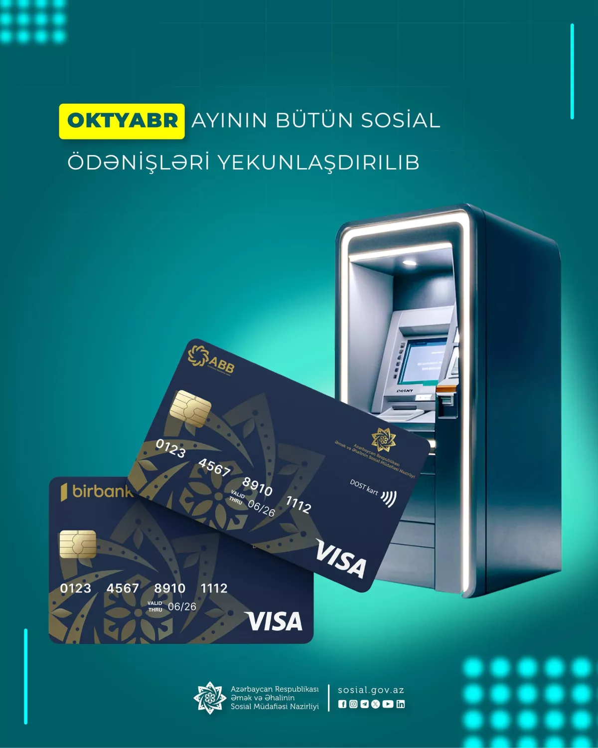 10 октября были выплачены пенсии за октябрь по Баку, Сумгайыту, Абшеронскому району и Нахчыванской Автономной Республике, 21 октября — пенсии за октябрь для пенсионеров, проживающих в других регионах, и лиц, которым назначена пенсия на льготных условиях, а сегодня выплачены пособия, стипендии и адресная государственная социальная помощь за октябрь.