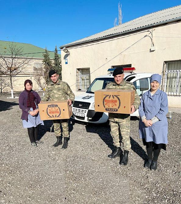 В связи с праздниками личный состав посетил могилы шехидов, семьи шехидов и раненых, детям шехидов и раненых были вручены праздничные гостинцы и различные подарки.