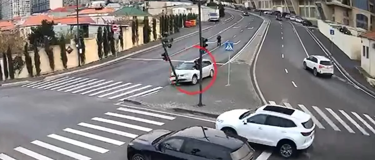 В Баку автомобиль «сбежал» от водителя и протаранил светофор ВИДЕО