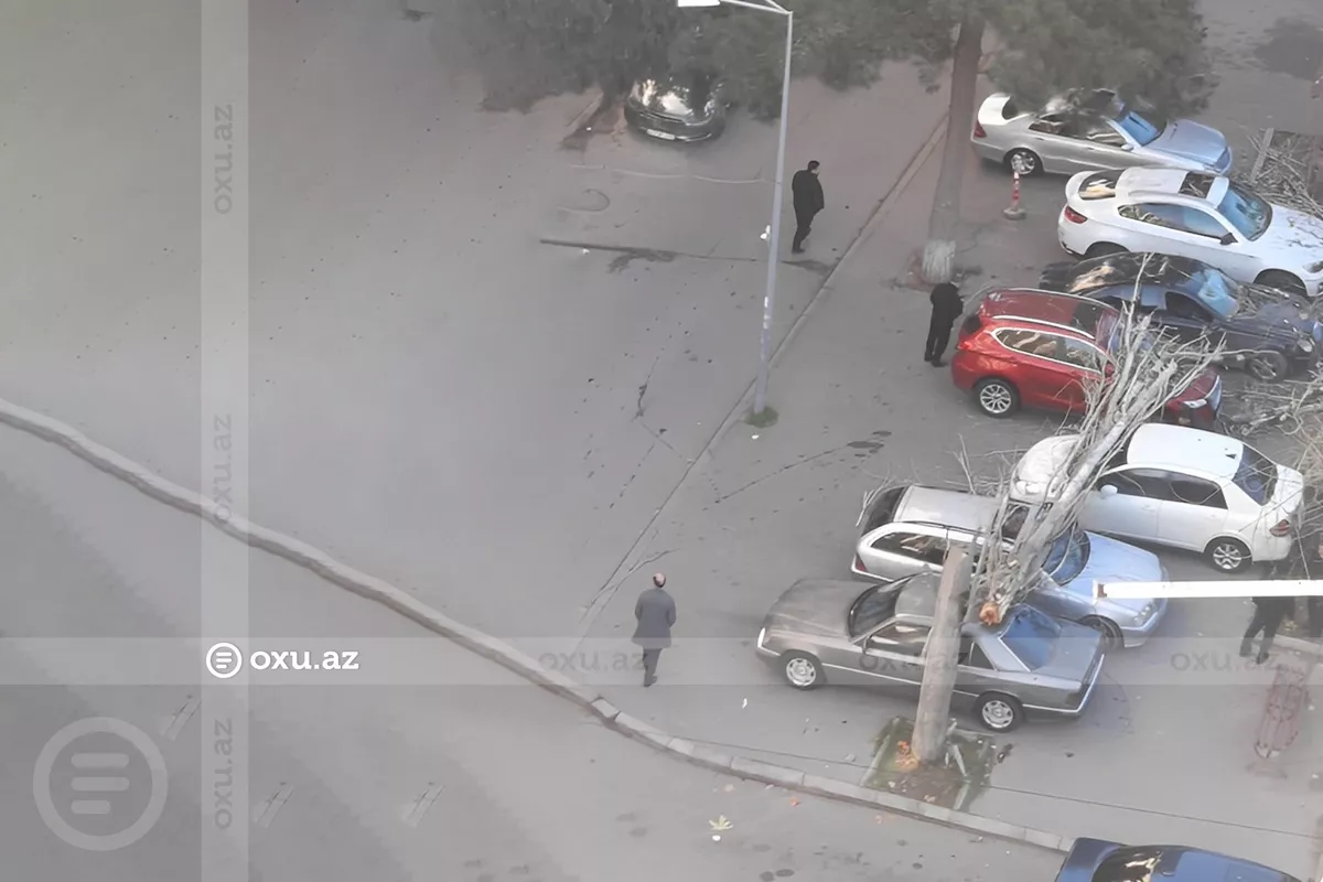 На улице Сараево, 18 в поселке Ахмедлы Хатаинского района, одно из деревьев упало и повредило несколько автомобилей.