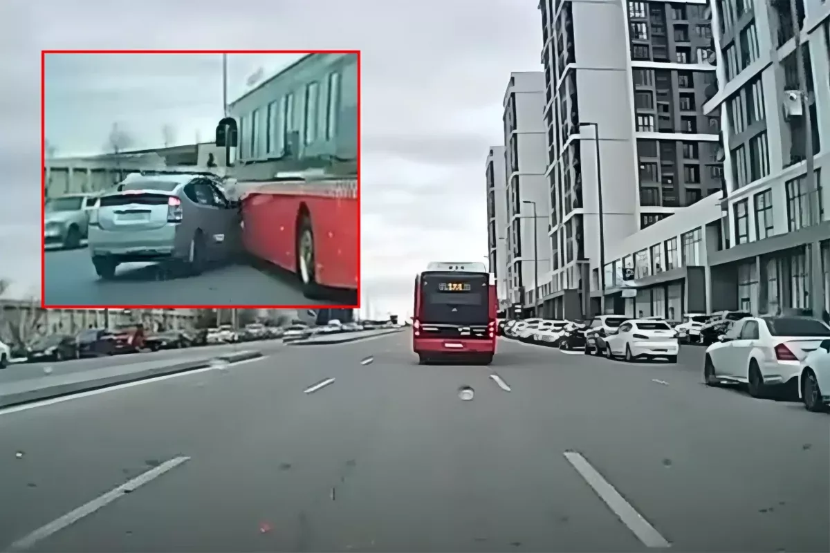 В Баку легковушка влетела в автобус: ВИДЕО