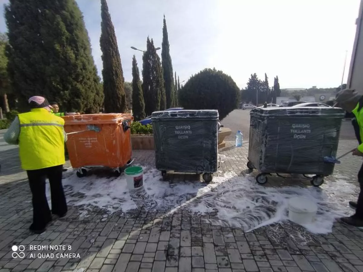 Сегодня коммунальными службами города Баку в рамках проведенного в столице и ее поселках внутреннего субботника по уборке была осуществлена очистка от пыли, скопившейся на улицах и обочинах дорог, во дворах и кварталах, а также проведен уход за существующими зелеными насаждениями.