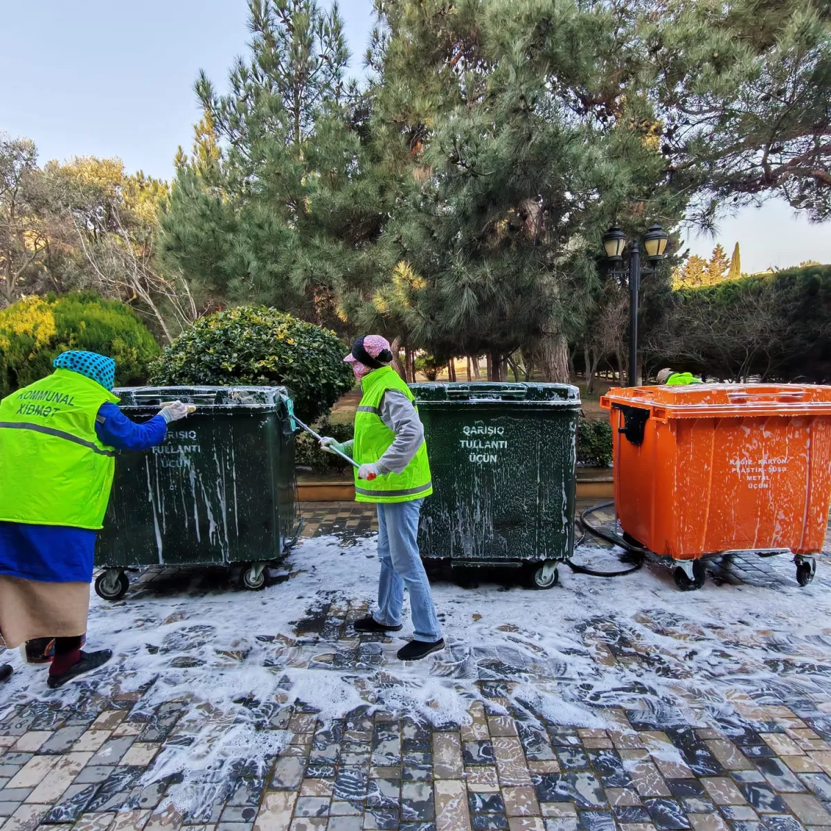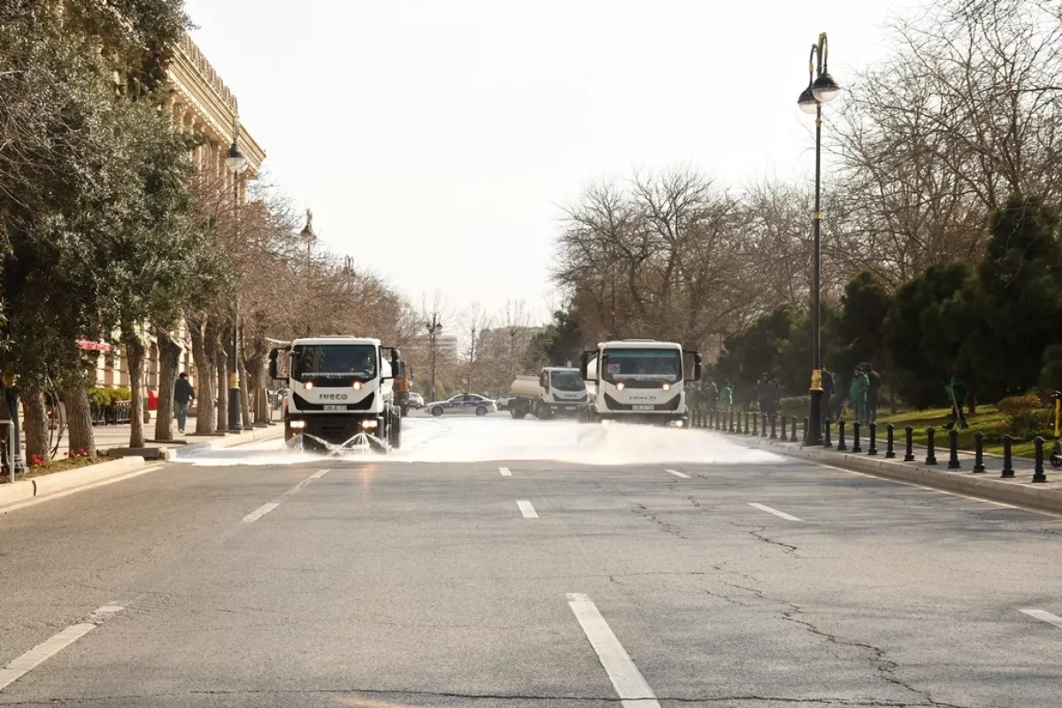 Как сообщили Caliber.Az в пресс-службе Исполнительной власти Баку, в ходе субботника очищаются автобусные стоянки, фасады зданий, стекла витрин и киосков, перила, фонарные столбы, бордюры, посажены цветы, благоустроена и украшена общественная территория, осуществлен уход за деревьями и другими зелеными насаждениями и т.д.