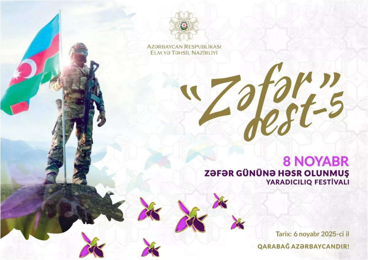 В четверг, 6 ноября в бакинском Дворце имени Гейдара Алиева под эгидой Министерства науки и образования состоится творческий фестиваль «ZəfərFest-5», посвященный 5-летию Отечественной войны.