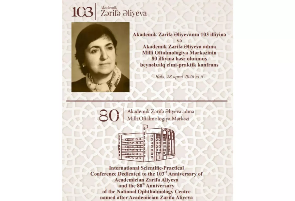 28 апреля по совместной инициативе Министерства здравоохранения Азербайджанской Республики, Национального центра офтальмологии имени академика Зарифы Алиевой и Общества офтальмологов Азербайджана состоится международная научно-практическая конференция, посвященная 103-летию академика Зарифы Алиевой, а также 80-летию Национального центра офтальмологии, носящего ее имя.