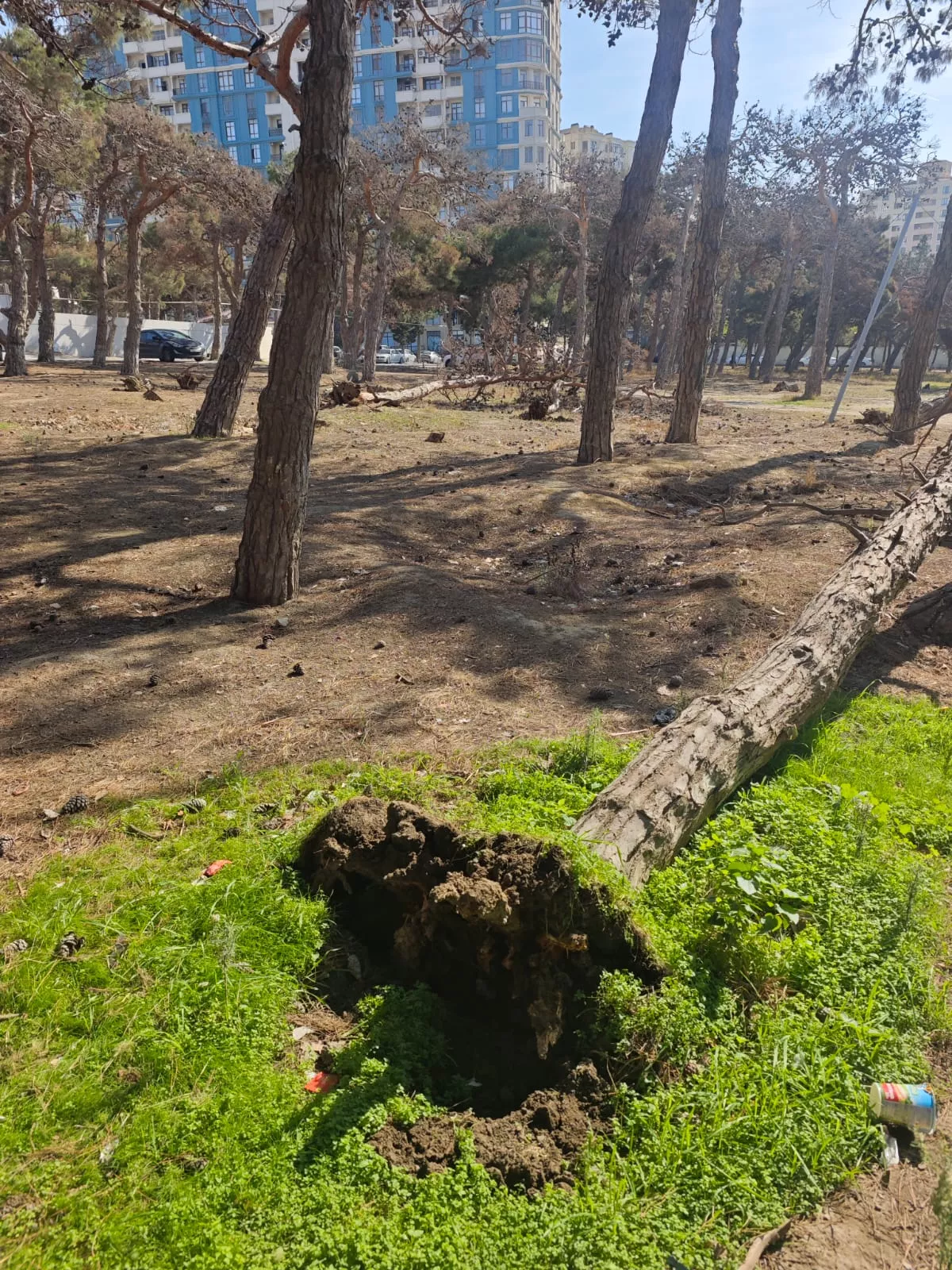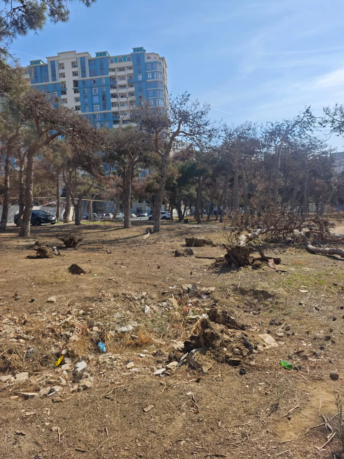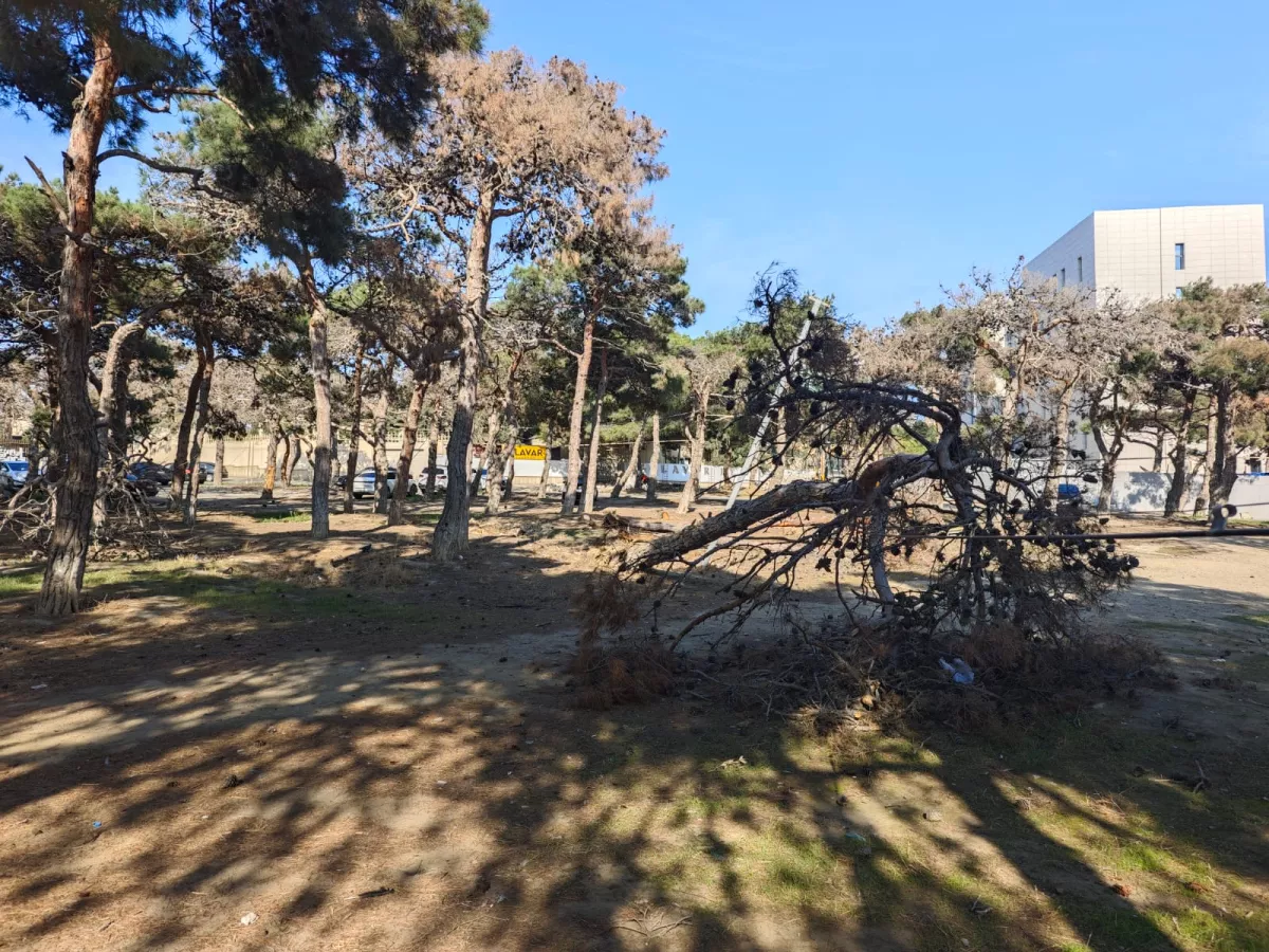 В лесополосе, расположенной у нижней части Республиканского стадиона имени Тофига Бахрамова, близ ресторана «Гилавар» (Gilavar) вырубаются деревья.