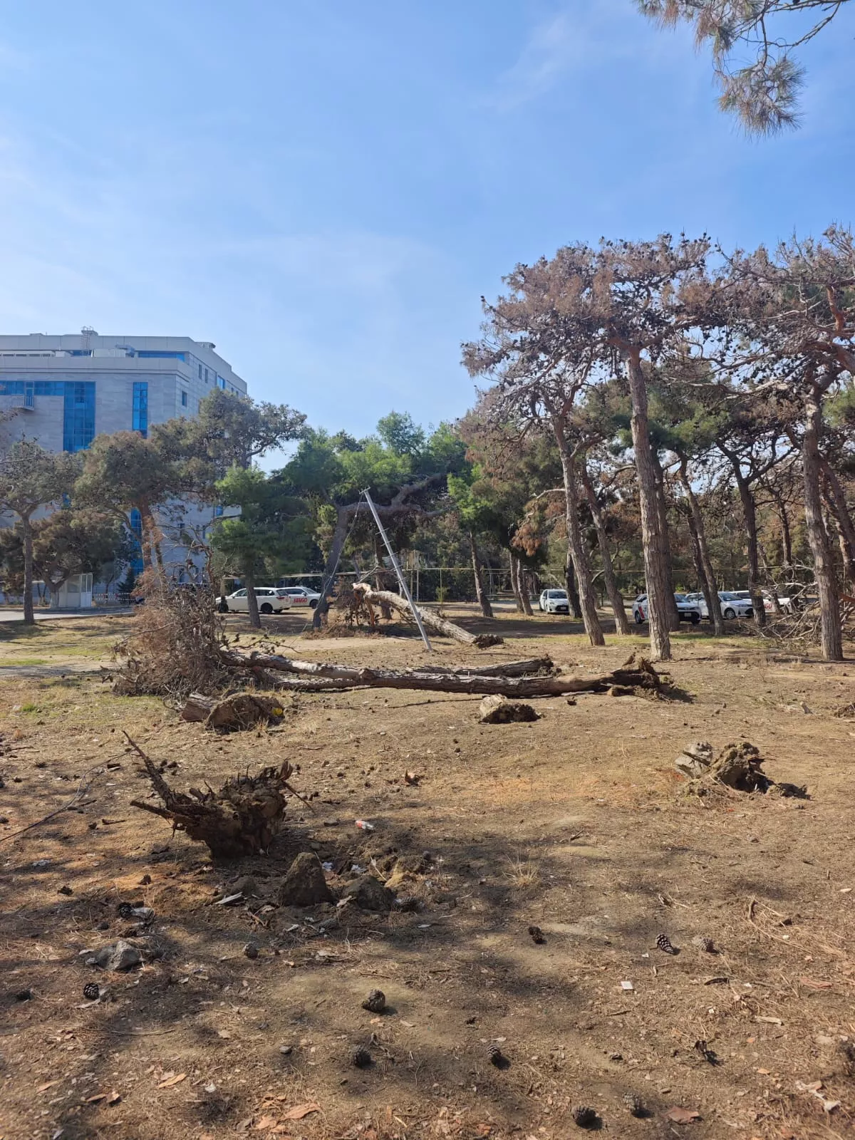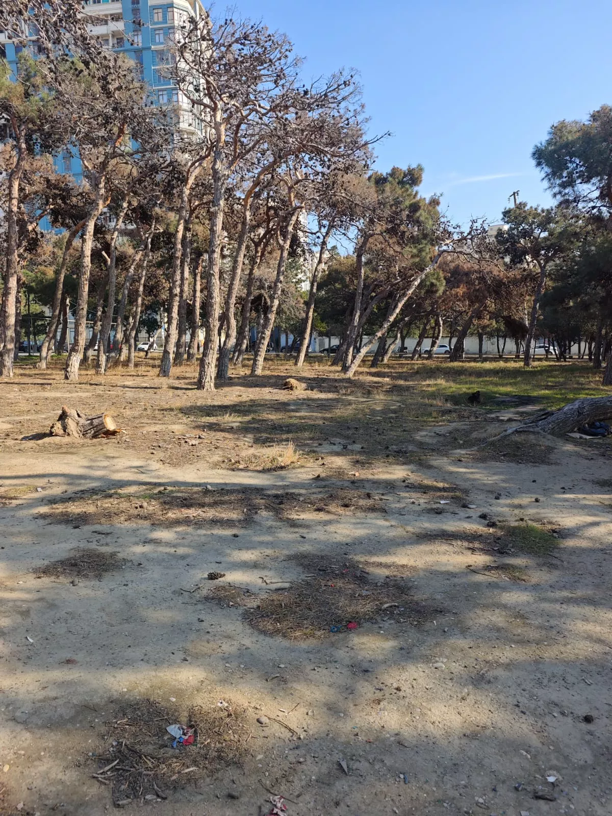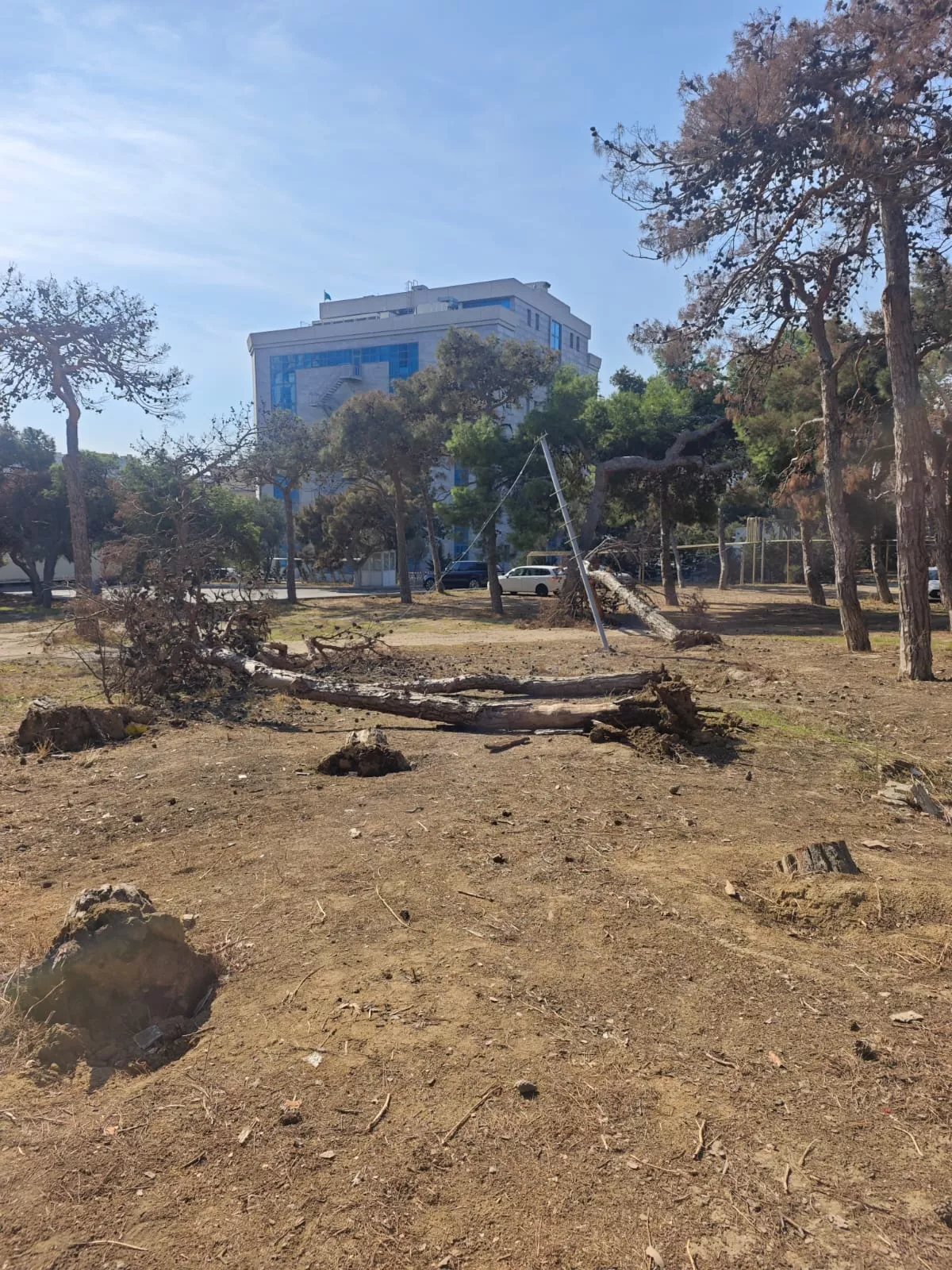 В лесополосе, расположенной у нижней части Республиканского стадиона имени Тофига Бахрамова, близ ресторана «Гилавар» (Gilavar) вырубаются деревья.