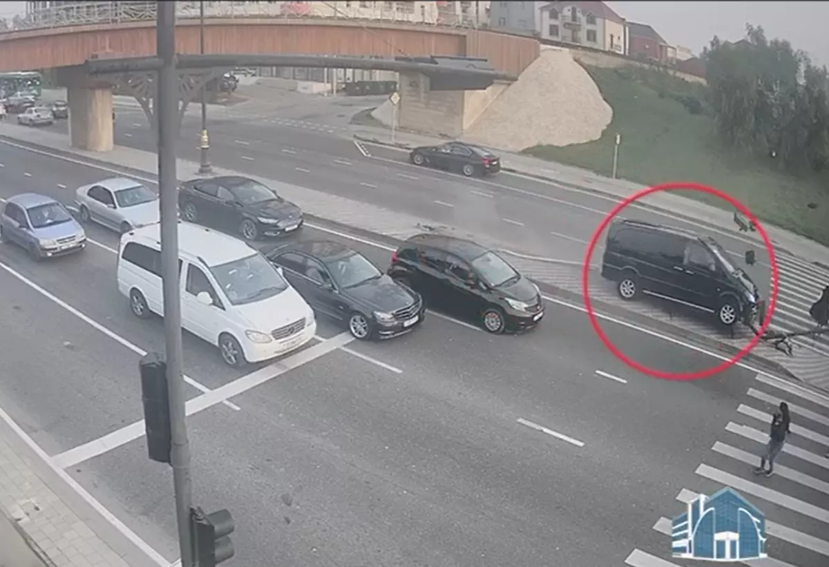 В Баку водитель микроавтобуса протаранил светофор ВИДЕО