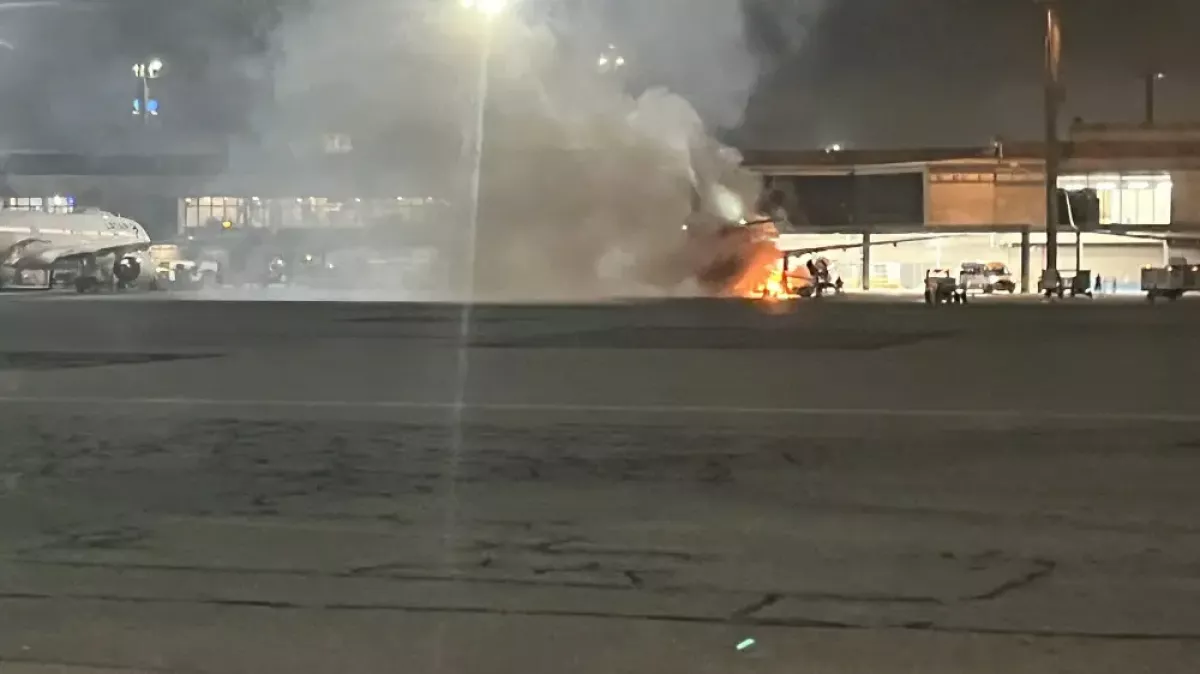 В Бразилии после посадки загорелся самолет Airbus A320 с пассажирами на борту.