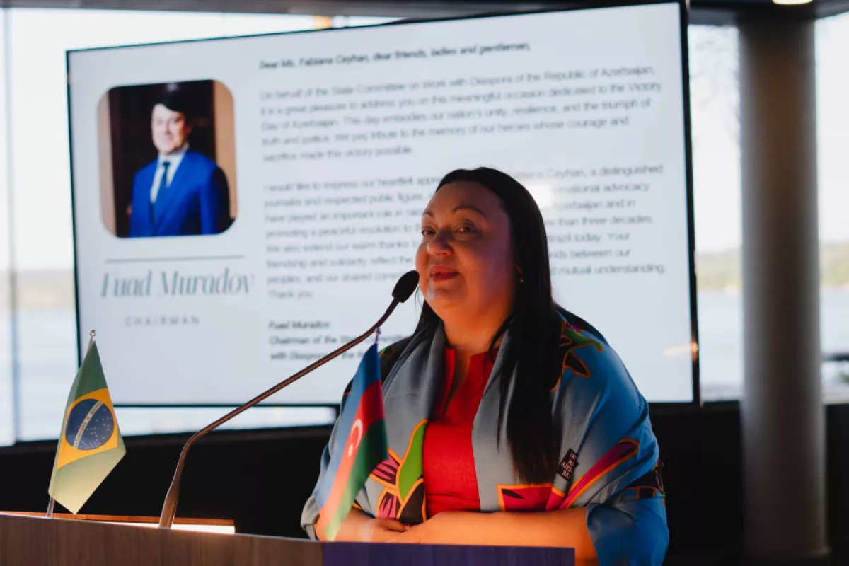 Как сообщили АЗЕРТАДЖ в Государственном комитете по работе с диаспорой, мероприятие состоялось при поддержке Комитета и организаторстве бразильского журналиста Фабианы Джейхан, начавшись с исполнения государственных гимнов обеих стран и почтения светлой памяти наших шехидов минутой молчания.