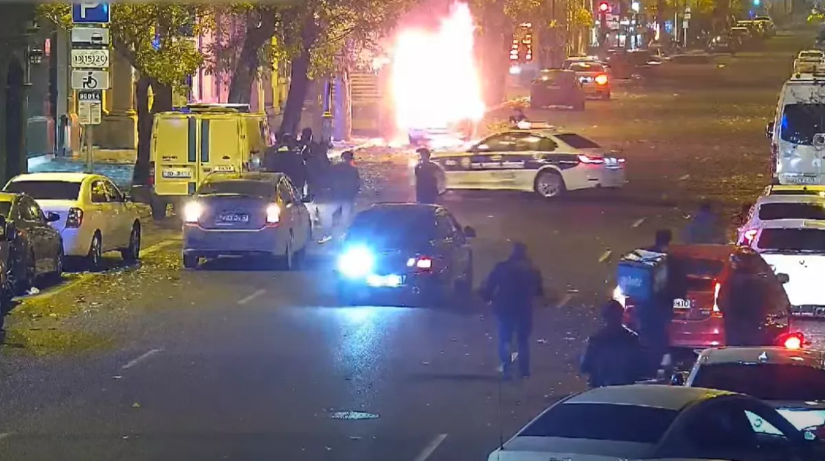 Минувшей ночью в Баку на улице Хагани (около сада Сахиль) произошло возгорание автомобиля.