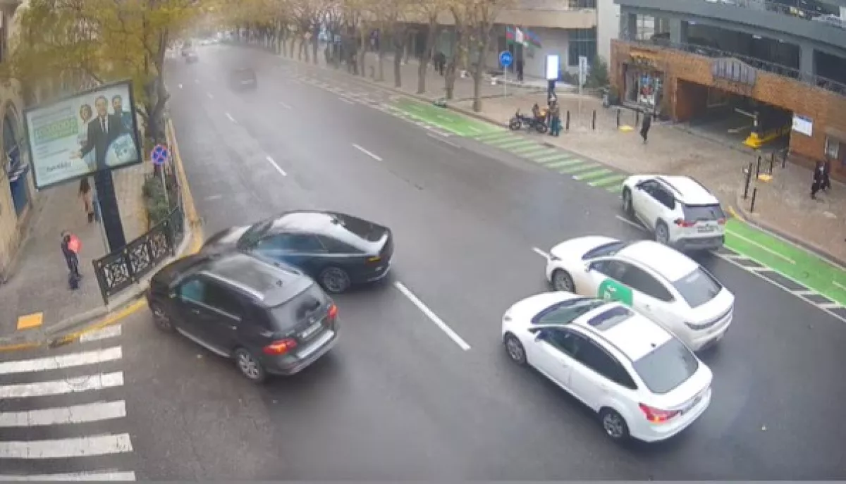 Как сообщает Сaliber.Az, водитель выезжавшего с парковки черного седана в нарушение правил поперек всех полос движения пытался выехать на улицу А. Джавада, но в него сбоку врезался ехавший своей дорогой водитель внедорожника марки Mercedes.