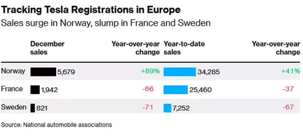 Как сообщает Bloomberg, успех сопутствовал Tesla только в Норвегии, где электромобили как транспорт стали визитной карточкой страны. В остальных странах Европы продажи машин Tesla оказались для компании сплошным разочарованием.