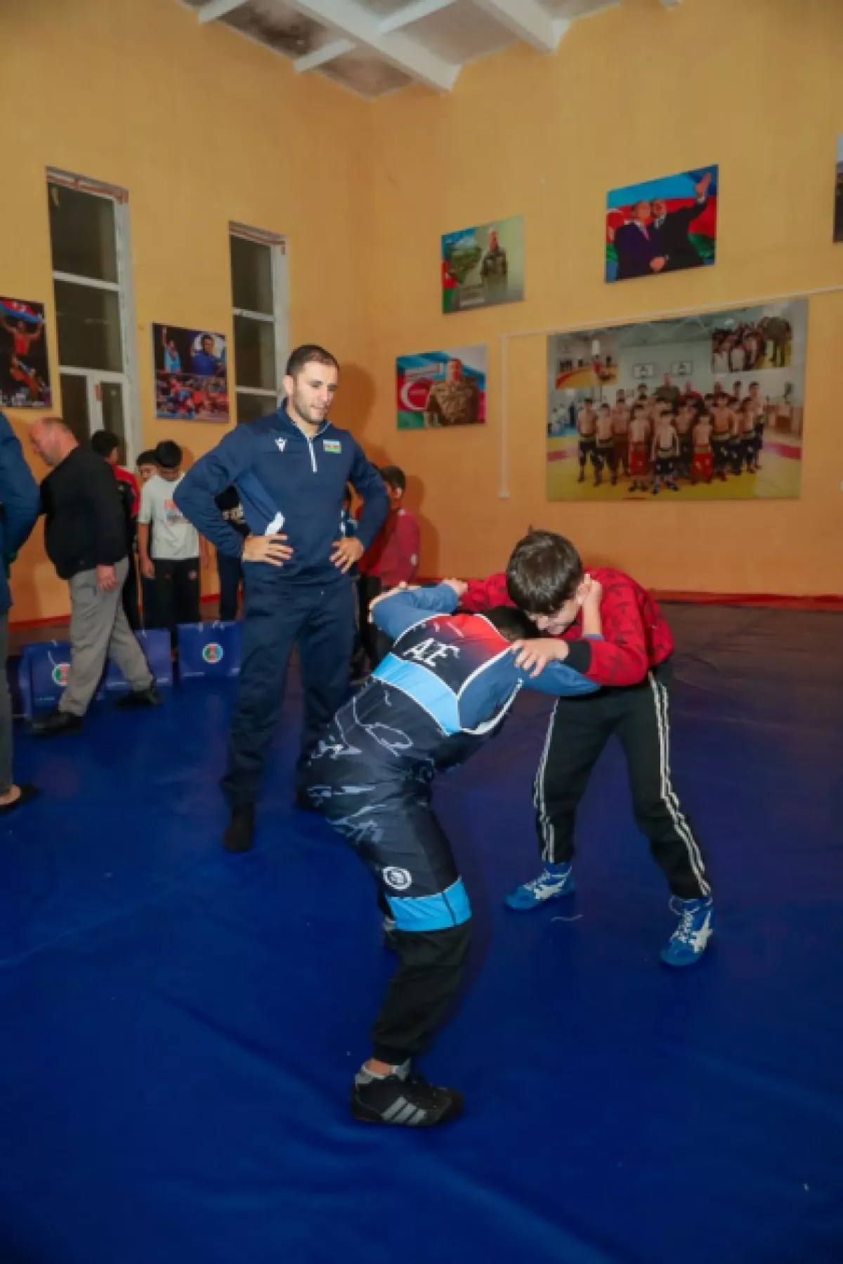 Они призвали будущих борцов всегда проявлять целеустремленность, быть бойцами, дисциплинированными и уверенно двигаться к высоким целям. Вюсал Эминов, тренер борцовского зала, продолжающего свою деятельность при поддержке Федерации, отметил, что эта встреча стала большим стимулом для молодого поколения. Затем юным и молодым борцам были вручены подарки от Федерации.