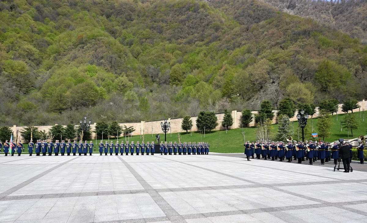 Под звуки военного марша почетный караул прошел перед Президентом Азербайджана Ильхамом Алиевым и Премьер-министром Чехии Андреем Бабишем.