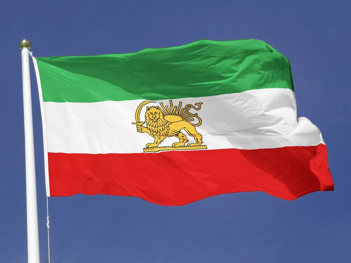 На видео видно, как иранцы на митинге в Мюнхене в поддержку национальных протестов поднимают 50-метровый флаг «Лев и солнце» с помощью двух подъемных кранов.