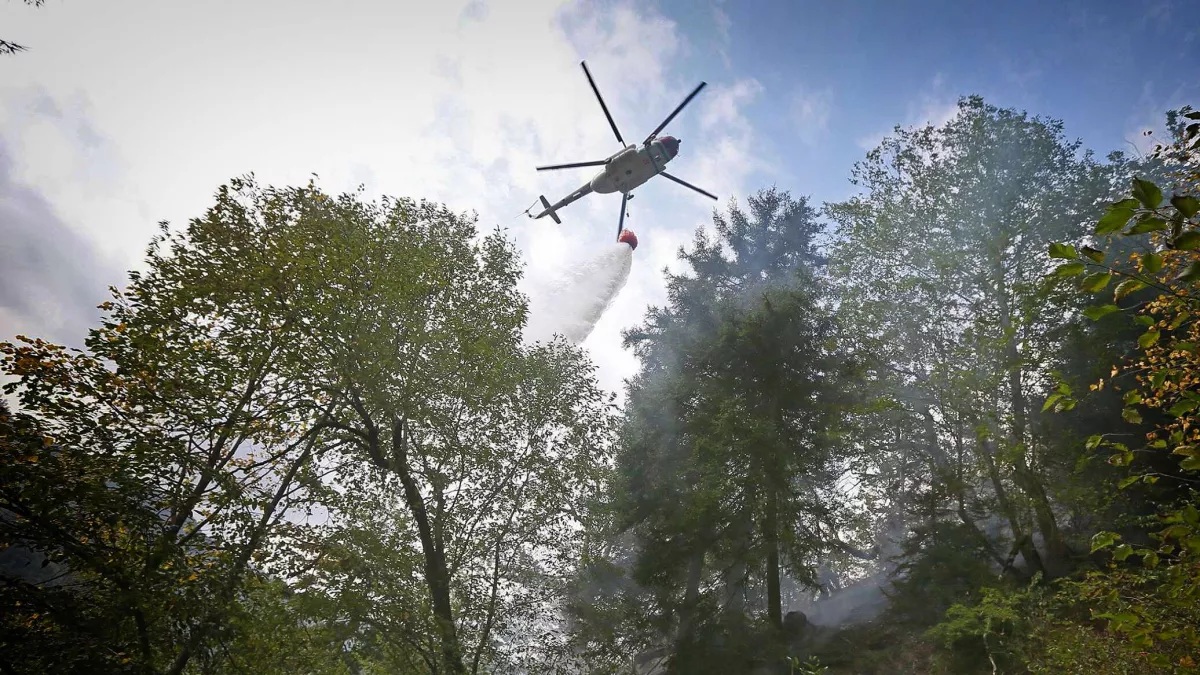 В Грузии три вертолета погранполиции подключились к тушению лесного пожара недалеко от города Багдати (регион Имерети).