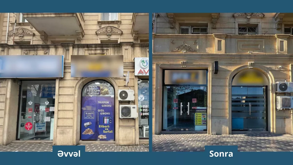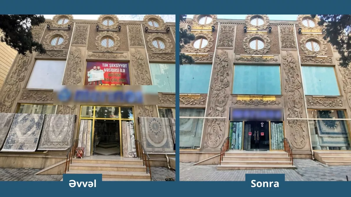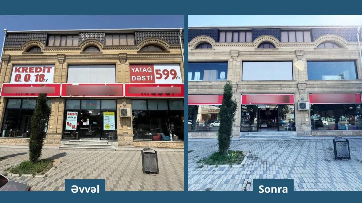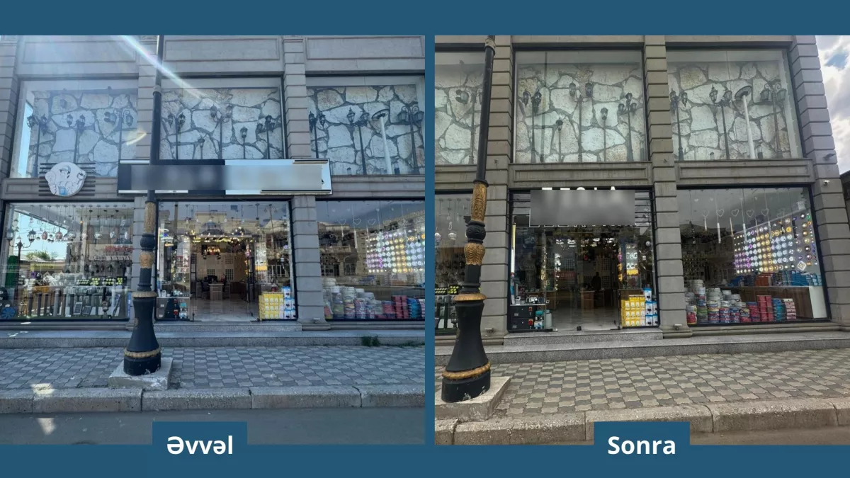В городе Гянджа на фасады зданий были установлены рекламные плакаты, не соответствующие эстетическому облику города и техническим требованиям.