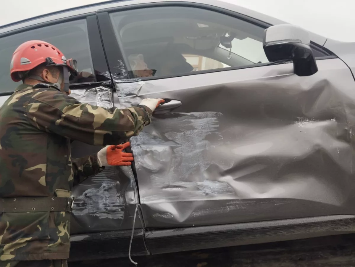 В Хачмазе на улице Баку произошло дорожно-транспортное происшествие, в результате которого пассажирка оказалась зажатой в автомобиле.
