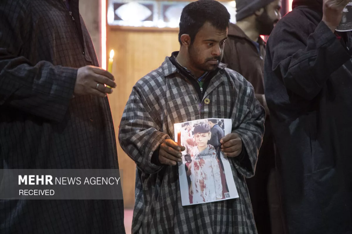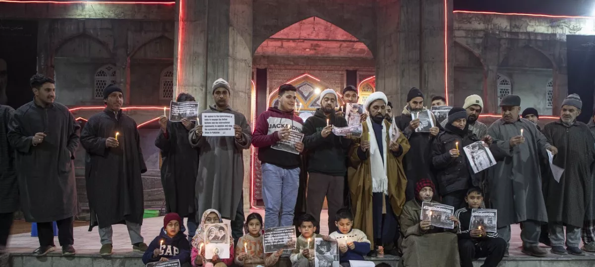 Сотни людей в Сринагаре, в управляемом Индией Кашмире, вышли на улицы в знак протеста против смертоносного теракта в шиитской мечети в Исламабаде.
