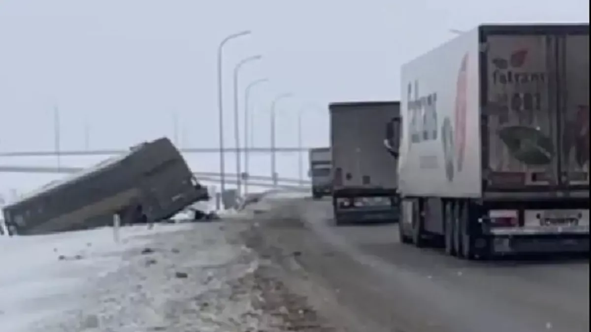 В Казахстане автобус с 47 иностранцами слетел в кювет после столкновения с грузовиком