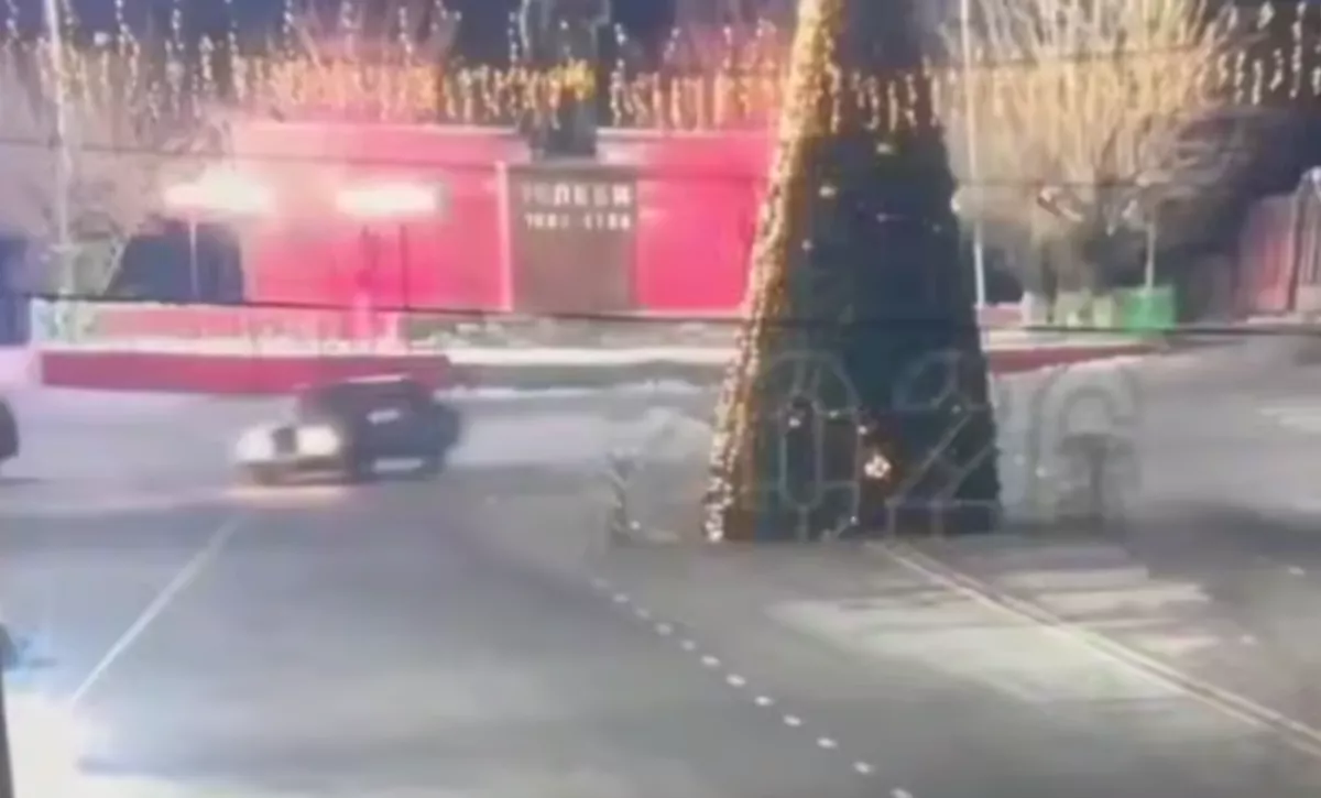 В Казахстане лихач снёс новогоднюю ёлку: ВИДЕО