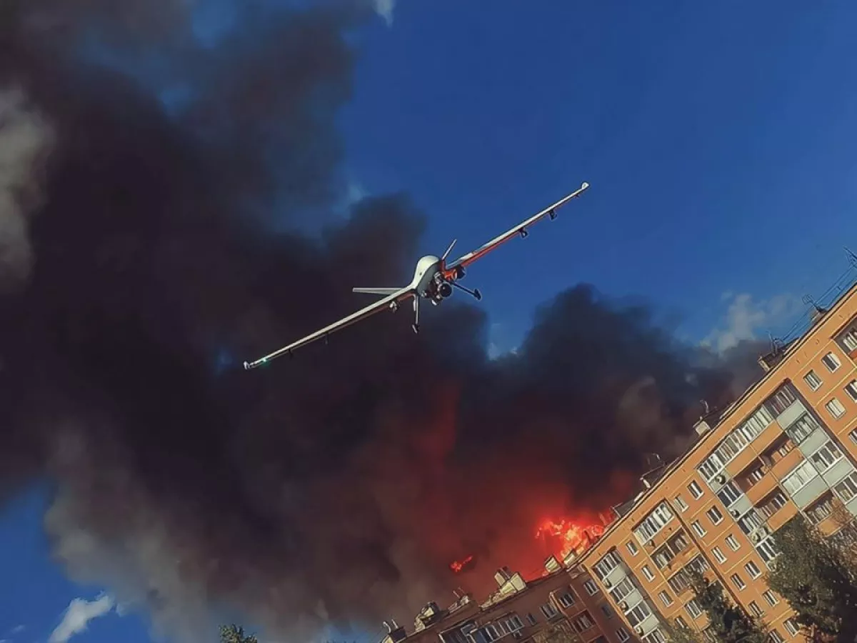 В Киеве обломки БПЛА упали на жилой дом