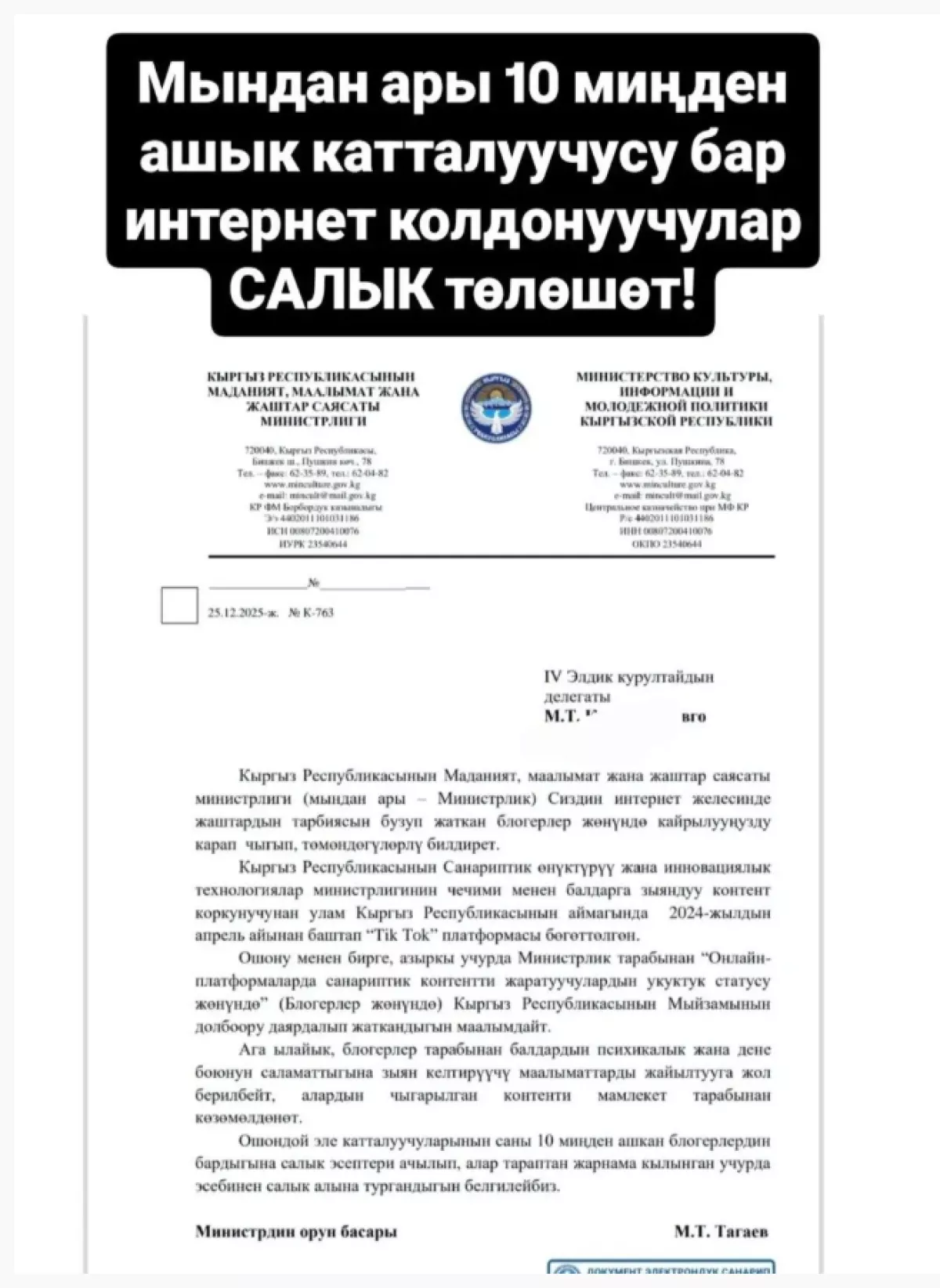 В Кыргызстане блогеров, имеющих более 10 тысяч подписчиков, могут обязать платить налоги.