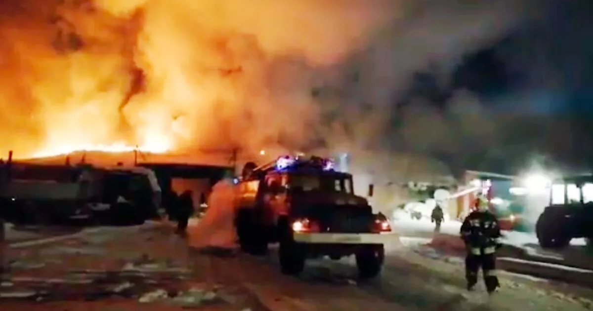 В городе Тельмана Ленинградской области произошло возгорание крупного ангара, площадь которого составила около 1700 квадратных метров.