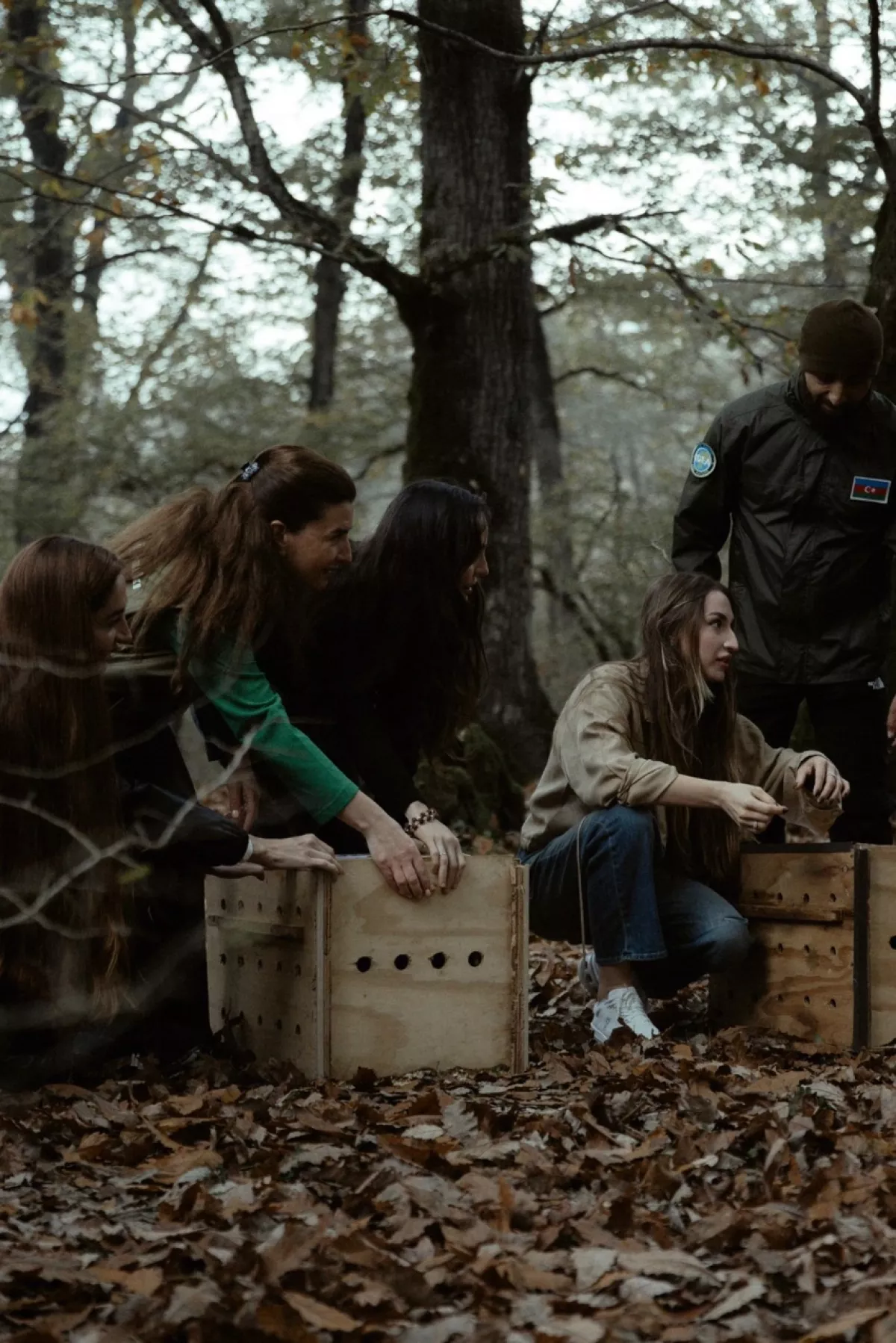 Далее на территории Гирканского национального парка для обогащения биоразнообразия была проведена акция по выпуску животных в естественную среду обитания. В рамках акции в естественную среду были выпущены 2 енота, 2 лисы и 4 дикобраза.