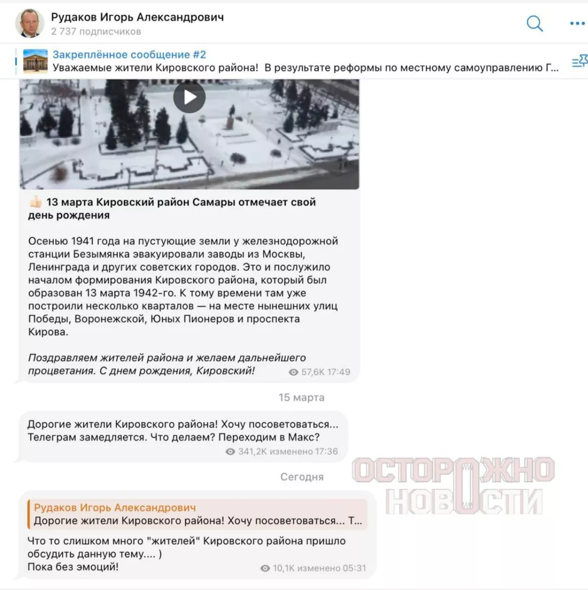 Как обнаружили «Осторожно, новости», глава Кировского района Самары Игорь Рудаков почистил пост, в котором спрашивал у жителей мнение о переходе в национальный мессенджер на фоне замедления Telegram. Любые реакции под ним исчезли. Своё решение Рудаков объяснил тем, что «слишком много «жителей» Кировского района пришло обсудить данную тему». «Пока без эмоций!» — добавил чиновник.