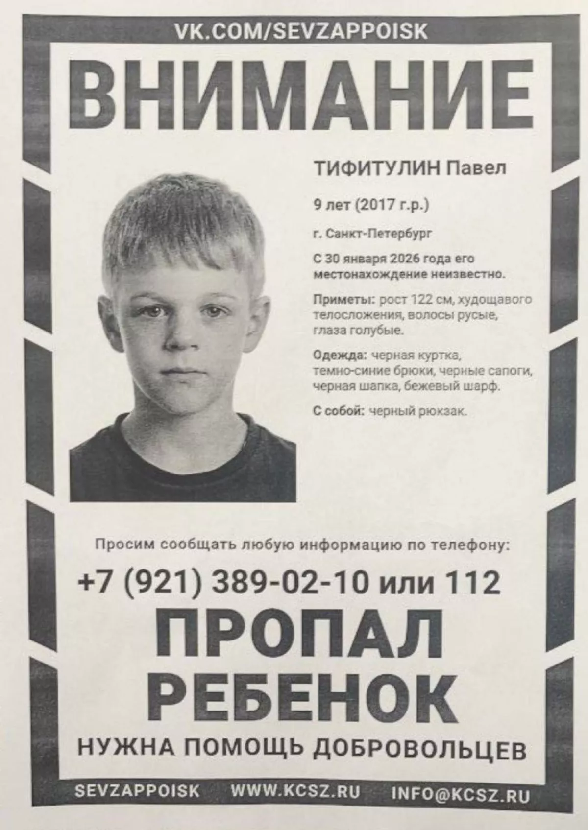 9-летний Павел Тифитулин, по данным МВД, в пятницу около 14:00 вышел из дома на Красносельском шоссе, 38, в Петербурге. Мальчик пошел кататься с горки и больше не вернулся домой.