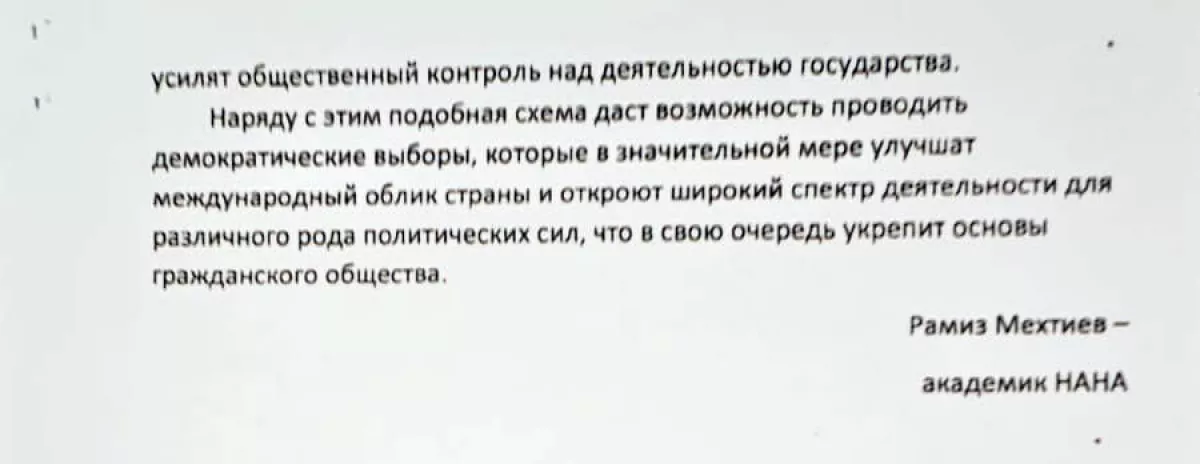 АПА публикует письмо, написанное Рамизом Мехтиевым.
