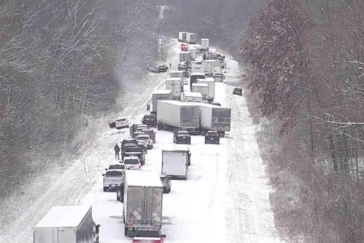 Около 45 автомобилей столкнулись на межштатной автомагистрали I-70 в штате Индиана (США) из-за снегопада.