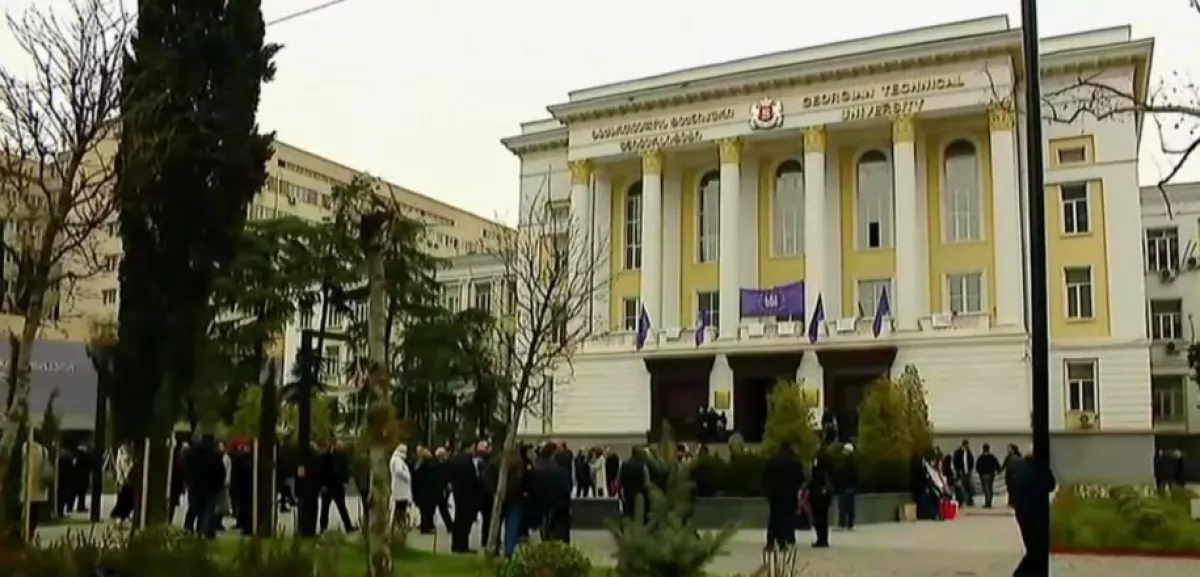 У административного здания Грузинского технического университета собрались представители академических и научных кругов, а также студенты. Они требуют отмены решения о слиянии Грузинского технического университета с Тбилисским госуниверситетом.
