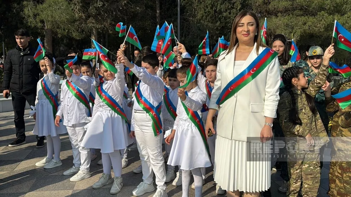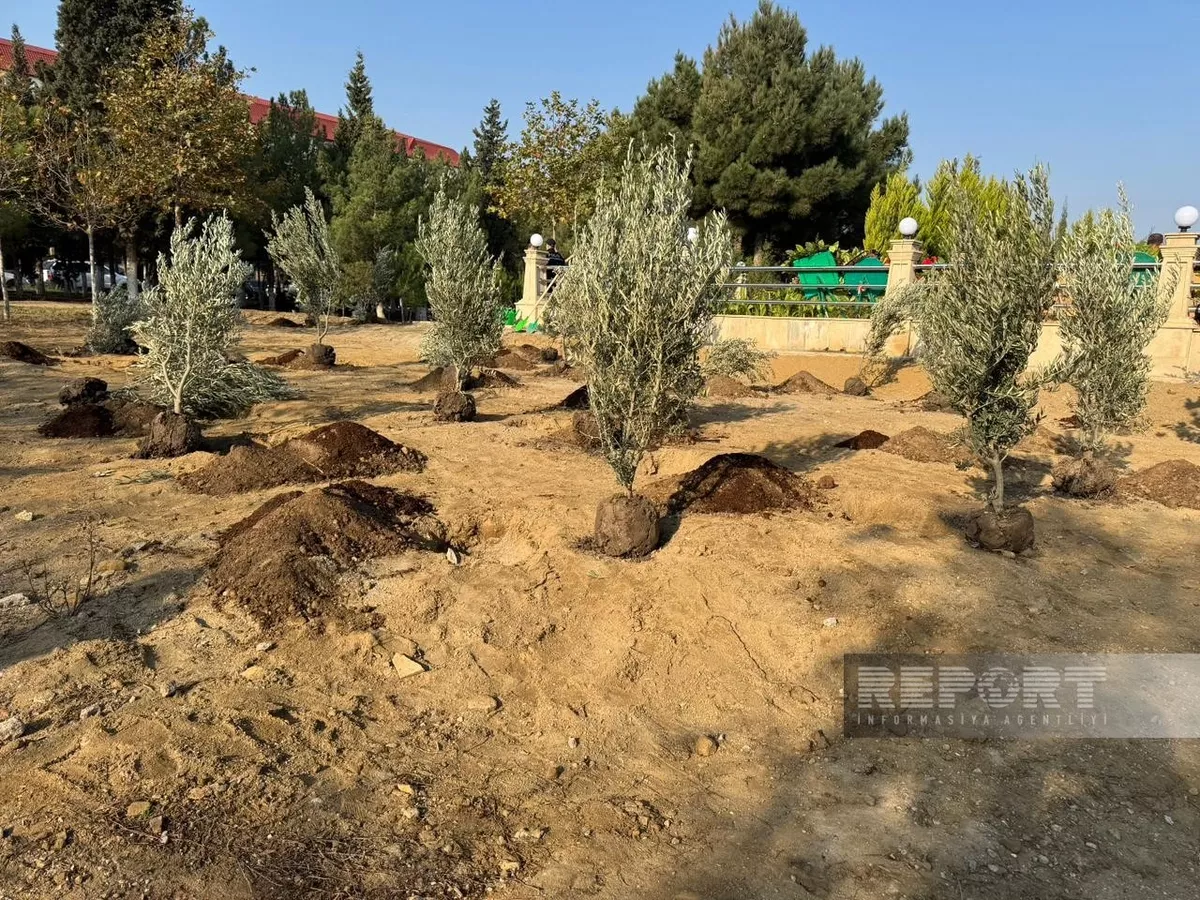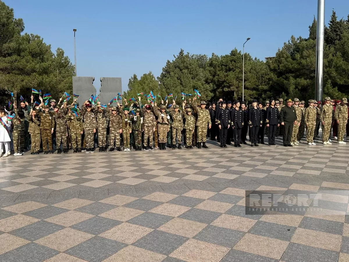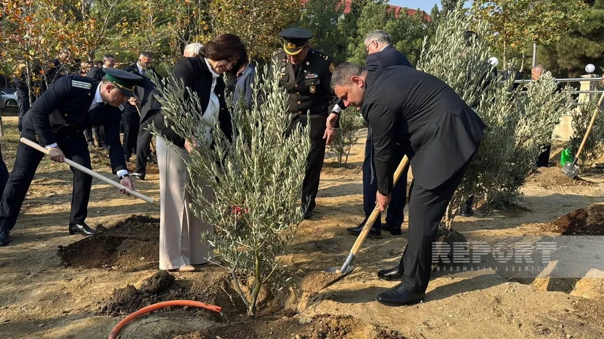 Как сообщает Report, мероприятие началось с акции по посадке деревьев, после чего участники собрались у Аллеи шехидов для возложения цветов и почтения памяти павших героев.