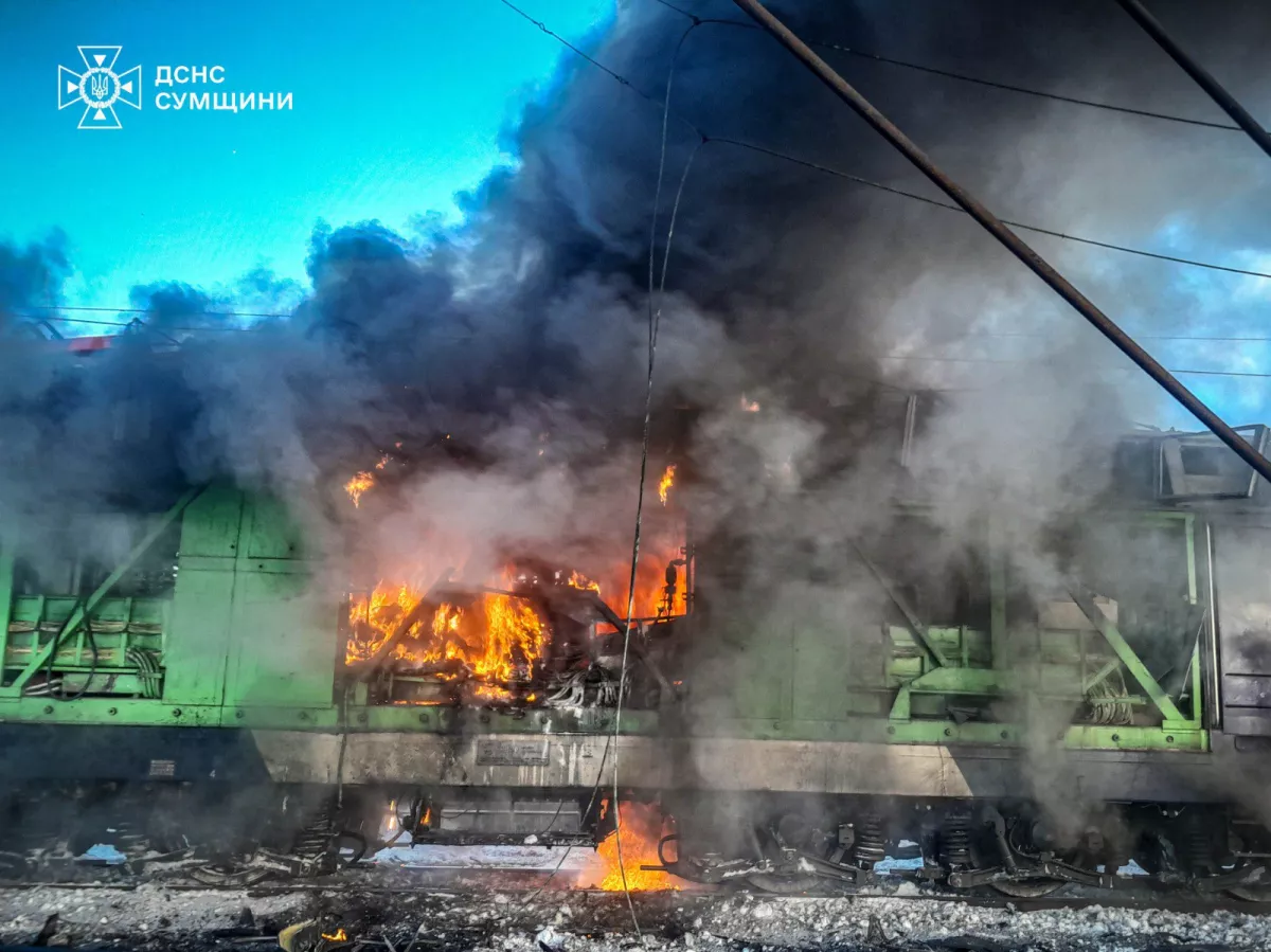 В Сумской области в результате удара БПЛА загорелся электропоезд ФОТО