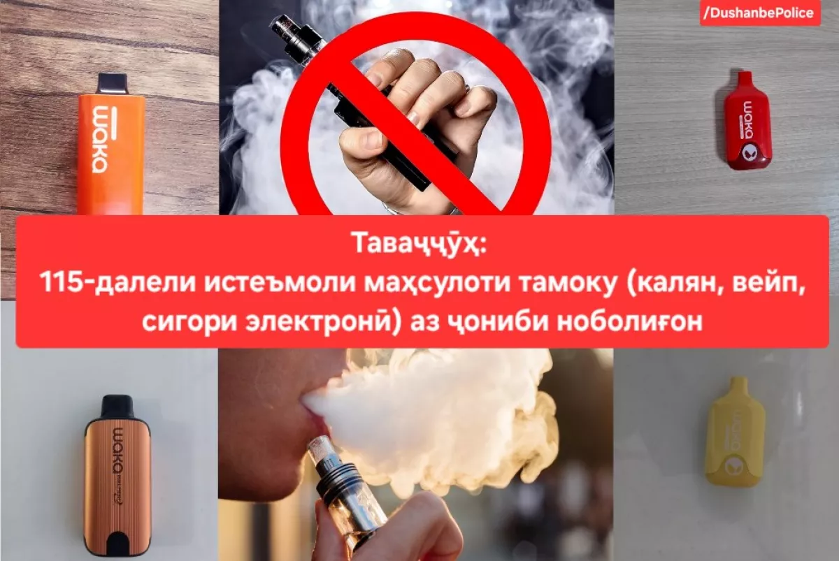 Сотрудники милиции Душанбе за январь-октябрь текущего года зафиксировали по меньшей мере 115 случаев употребления кальяна и различных типов электронных сигарет на территории школ и других образовательных учреждений столицы.