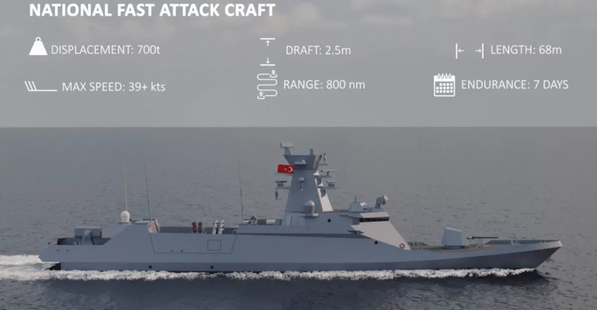 Национальный быстроходный ударный корабль (FAC) будет способен вести боевые действия в надводном положении, занимая заранее обозначенные скрытые позиции, тем самым затрудняя обнаружение и идентификацию противника. Он также способен поражать надводные цели с помощью дальнобойных управляемых ракет (ATMACA SSM) и 76-мм артиллерийской установки (MKE), а также проводить скоординированные атаки с фрегатами и вертолетами в составе оперативной группы.