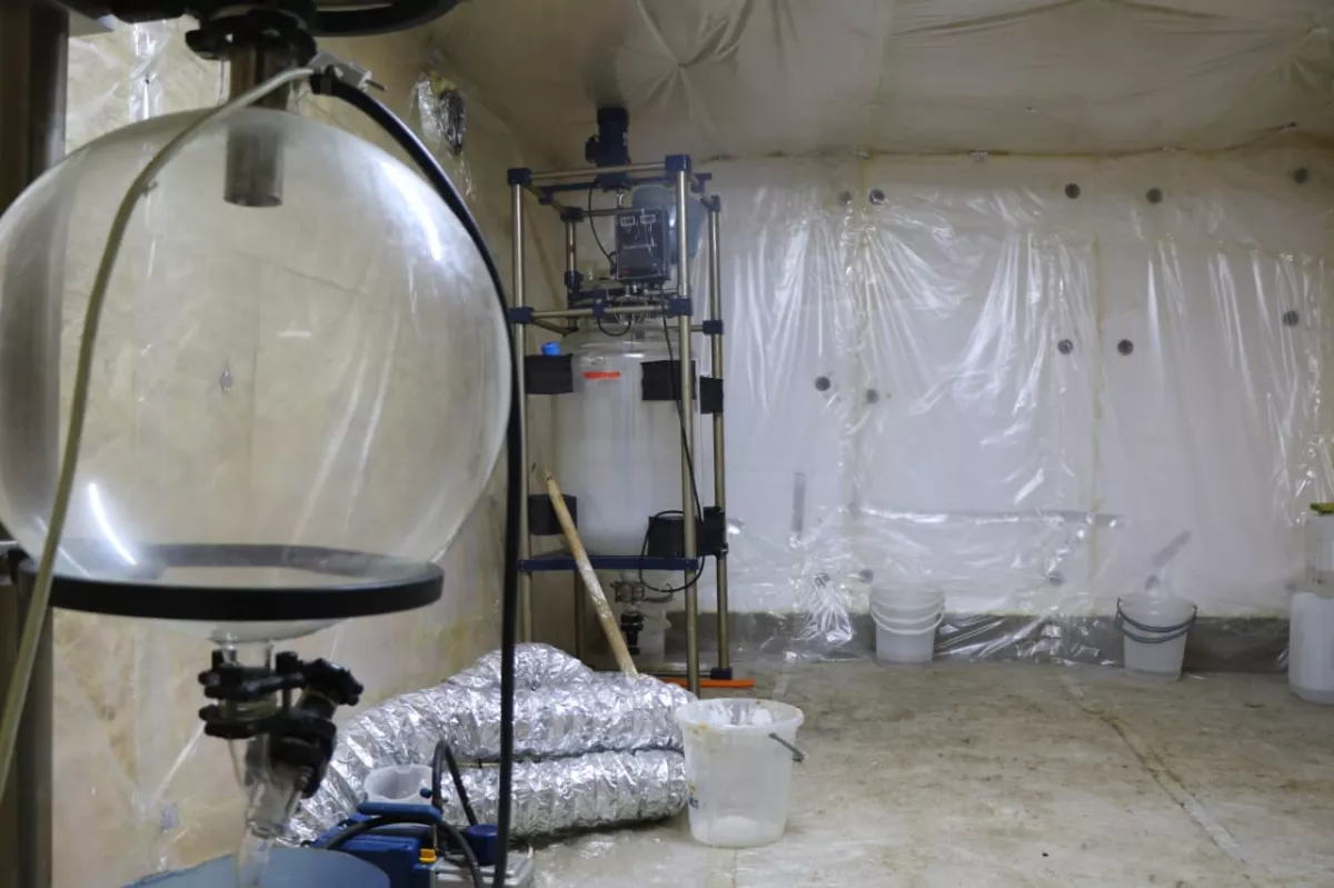 Как передает Caliber.Az со ссылкой на местные СМИ, на месте изъяли емкости с жидкостями, белый порошок, сильнодействующие препараты и оборудование для производства наркотиков.