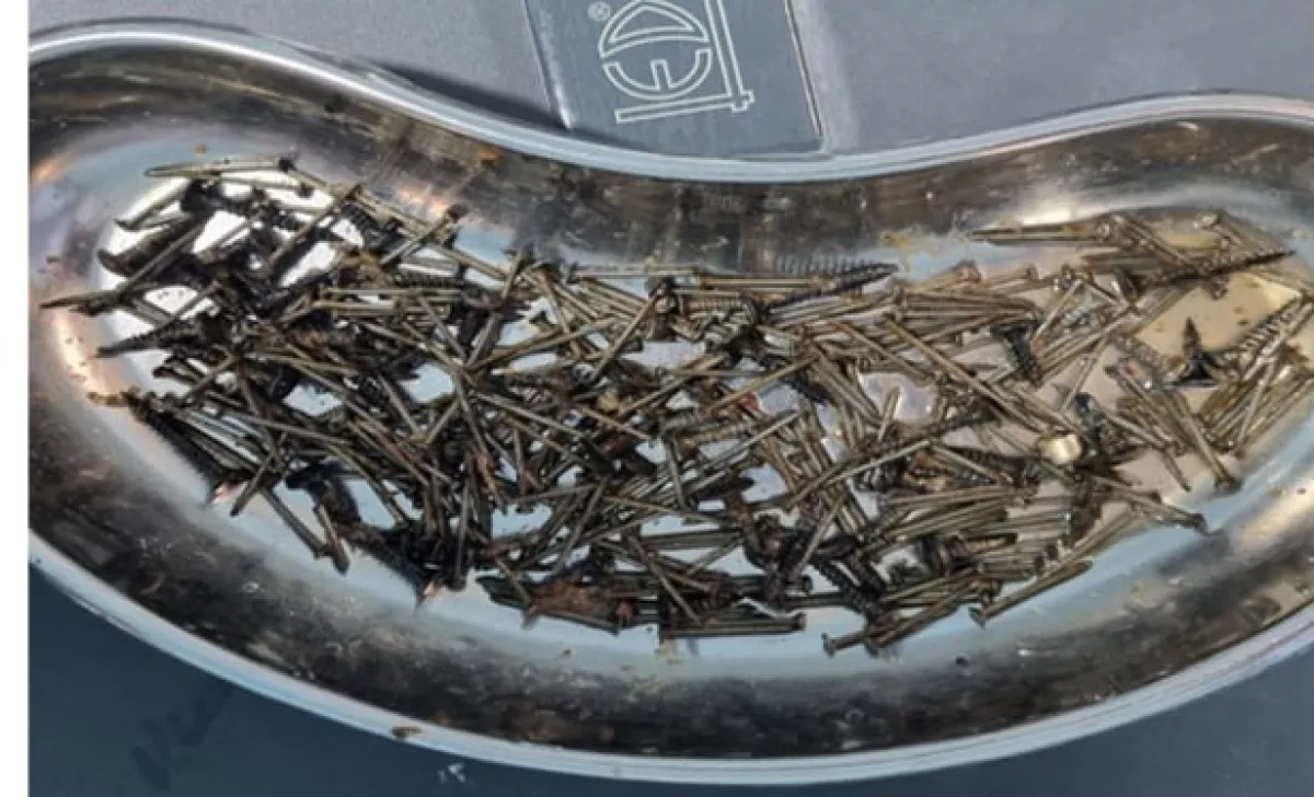 Пациент поступил в больницу с жалобами на острую боль. Диагностика подтвердила наличие большого количества металла в желудочно-кишечном тракте. Операция методами лапаротомии и гастростомии длилась около часа, в ходе которой врачи извлекли почти 200 граммов инородных предметов.