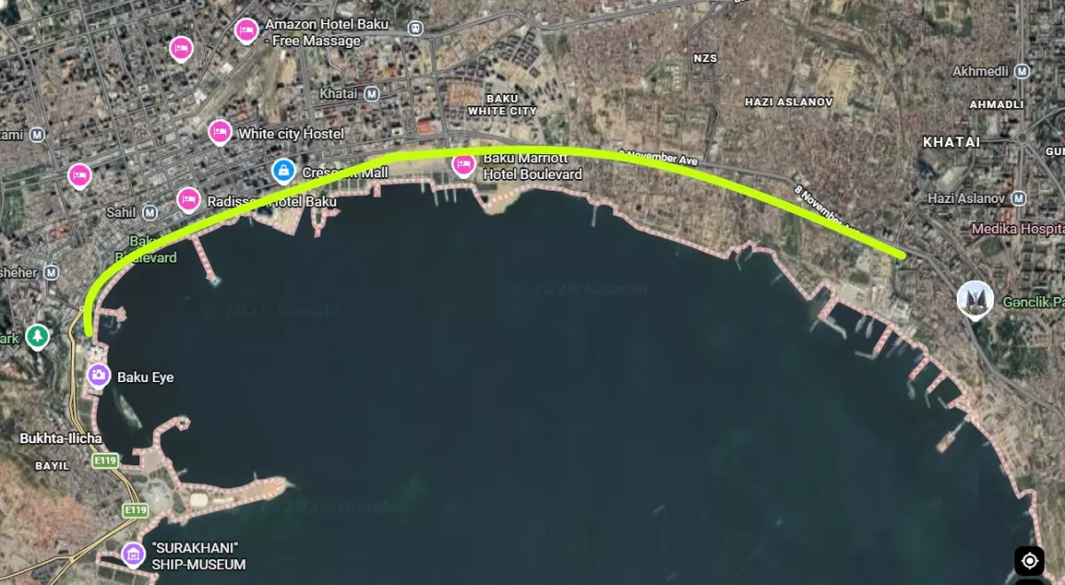 Его проложат от торгового центра Dəniz Mall вдоль проспекта Нефтяников и далее вдоль проспекта 8 Ноября до насосной станции в районе кафе «Наргиля».