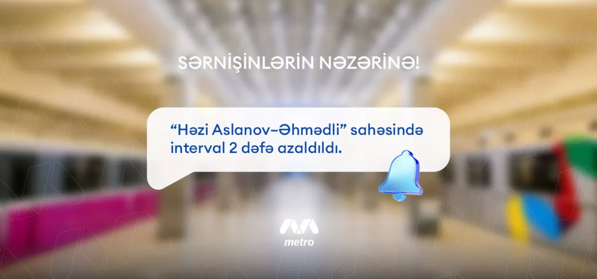 Вдвое сокращён интервал движения поездов на участке «Ази Асланов» - «Ахмедлы» – с 10 до 5 минут (в часы пик).