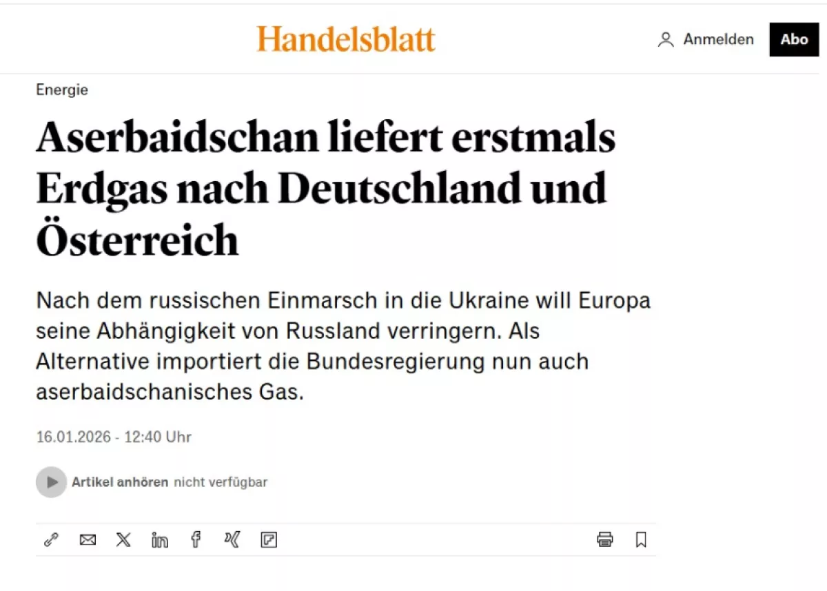 В статье, опубликованной в Berliner Zeitung, привлекается внимание к интеграции азербайджанского газа в европейскую инфраструктуру и стратегической роли TAP. Газета напоминает, что официальный выход на немецкий рынок осуществляется впервые, а TAP и Южный газовый коридор выполняют стратегическую функцию для энергетической безопасности Европы. Посредством существующей транспортной сети газ может гибко перенаправляться на различные рынки, что повышает надежность энергоснабжения, отмечает издание.