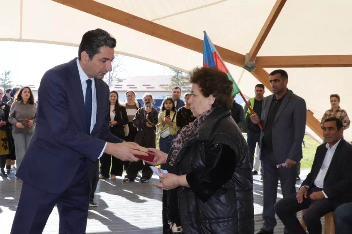 Переселившимся в село Хоровлу Джебраильского района семьям вручены ключи от новых квартир.