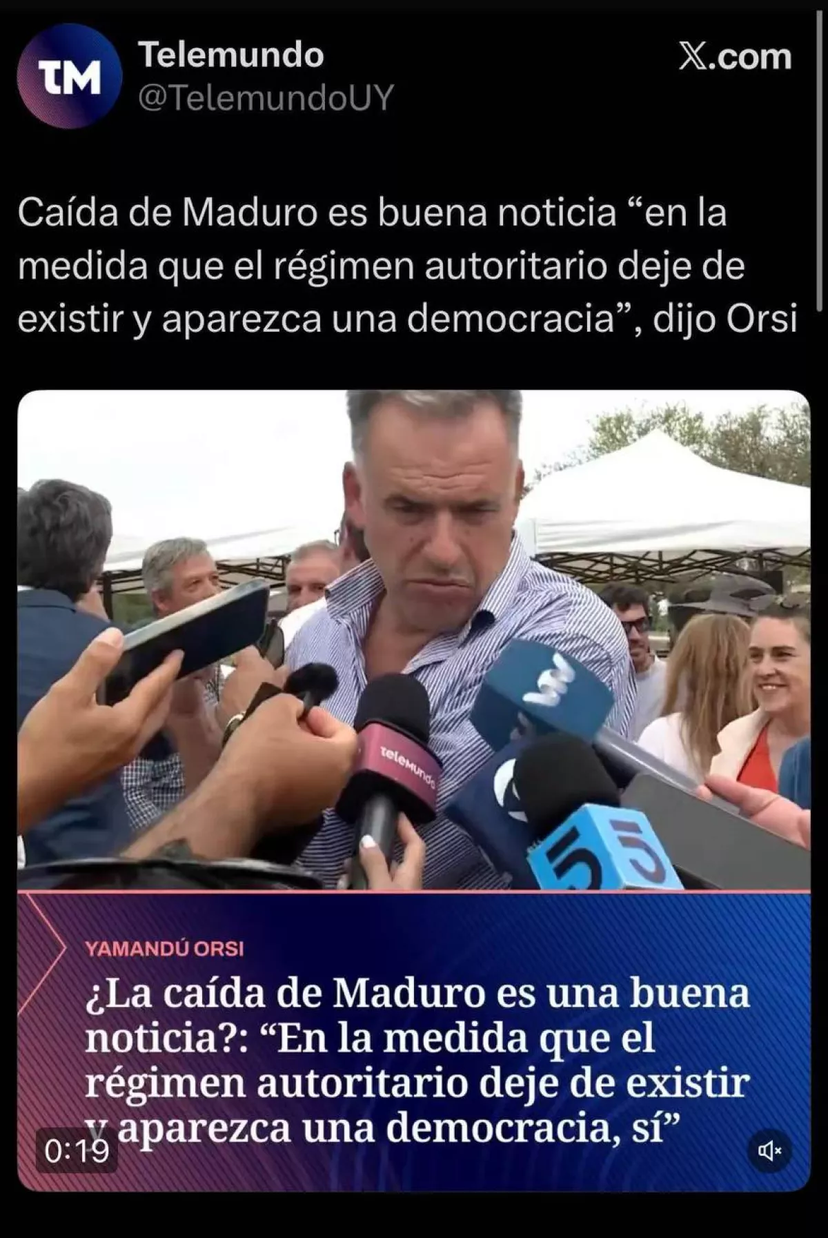 Ранее Орси заявил, что «падение Мадуро — это хорошая новость в той мере, в какой авторитарный режим перестанет существовать и появится демократия».
